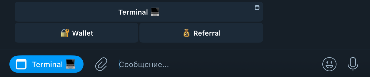 In the "🔐 Wallet" section or after entering the /start command, you will see your wallet address. Copy this address for future use.