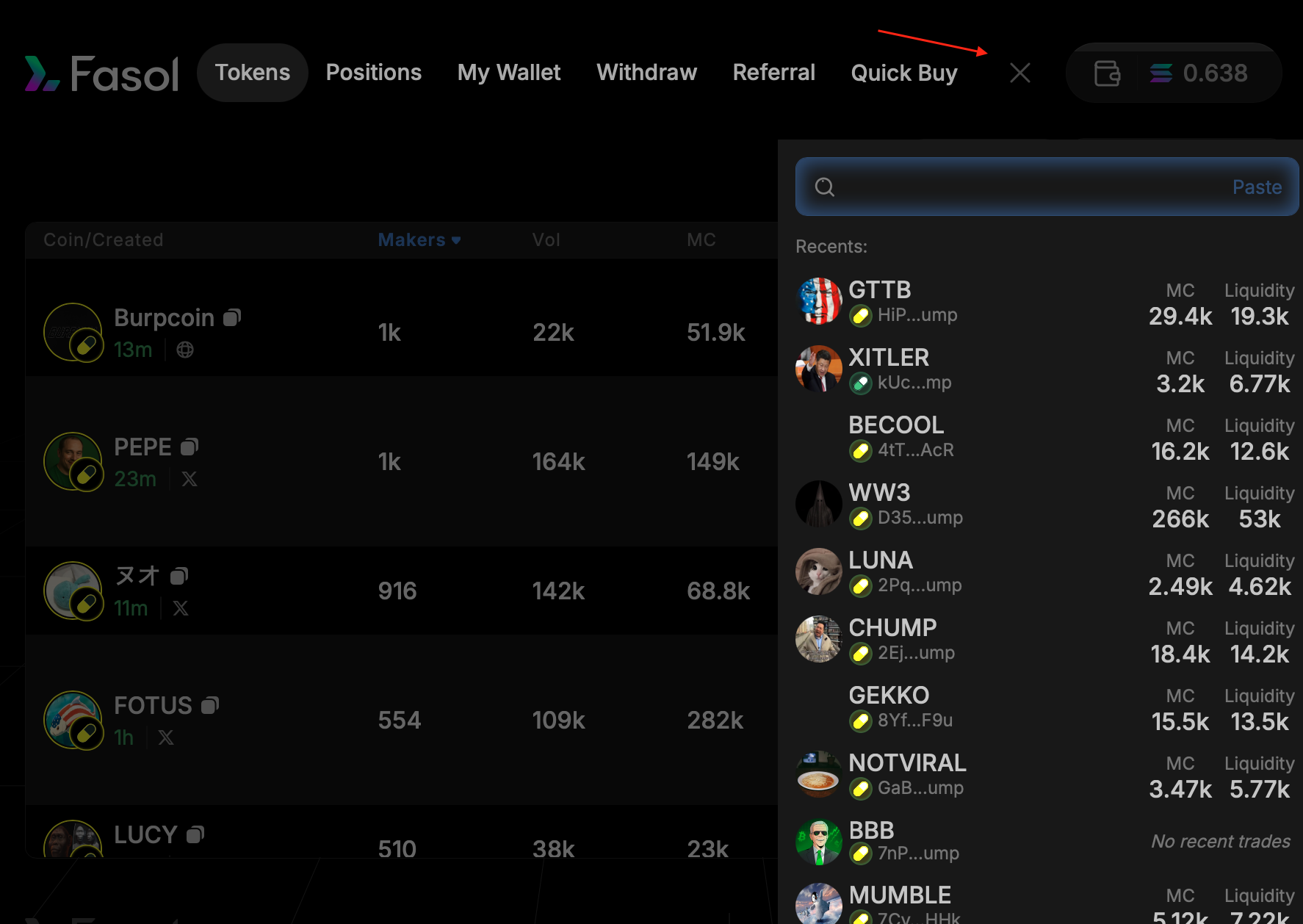 Important: Trading in Fasol Terminal is conducted exclusively in SOL (Solana).